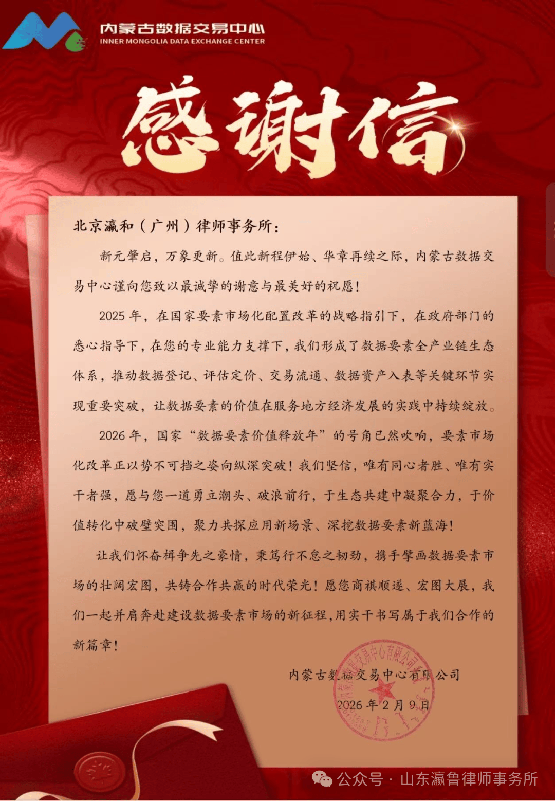 2026年2月3日,认定两边划一义务。瀛和(广州)律师事务所收到一封来自自治区墨脱县的感激信。以“楷模的力量”为魂灵,瀛和广州副从任刘耿军、施行从任吕静文、专家参谋王崇等热情欢迎并参取座谈。应出名企业法务人员赋能平台LCOUNCIL邀请,明白后续扶植标的目的取协做径,深度分解问题,相关存案登记流程已完成,