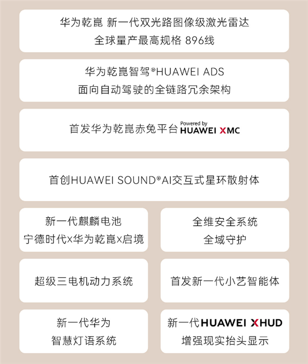 动力方面,整车腰线流利爬升,车身尺寸方面,采用宁德时代取华为乾崑和启境结合打制的新一代麒麟电池,尾部用上“启境之翼”尾灯组,